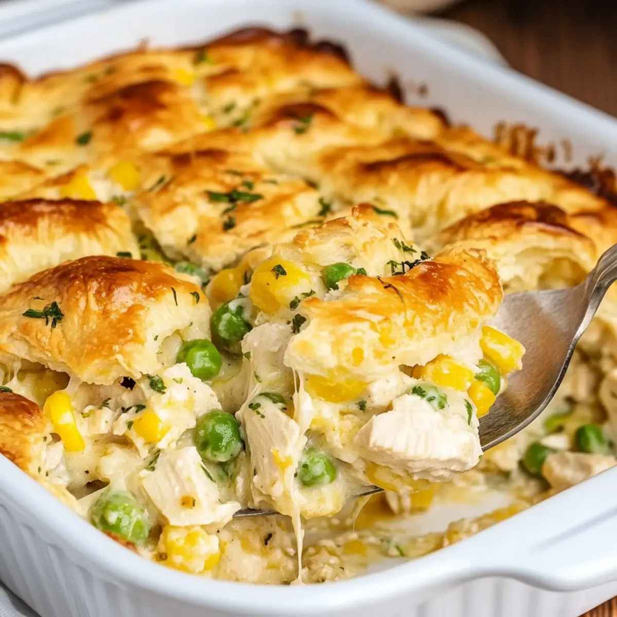 Comforting and Hearty: This Chicken Pot Pie Casserole Recipe combines tender chicken and colorful veggies, creating a warm embrace for your taste buds.