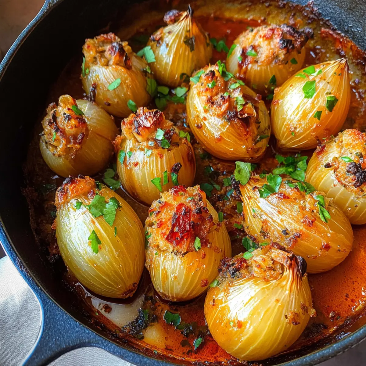 When the seasons change and the air turns crisp, I find myself longing for hearty meals that warm both the stomach and the soul. That’s when my love for caramelized stuffed onions shines through. These delightful bulbs are not just ingredients; they're vessels of flavor filled with a savory mixture of ground pork and aromatic spices, all enveloped in a tangy tomato sauce that evokes memories of family dinners lovingly shared. The tender, melt-in-your-mouth texture, paired with their Mediterranean roots, makes these stuffed onions a fantastic centerpiece for both casual weekdays and special occasions.